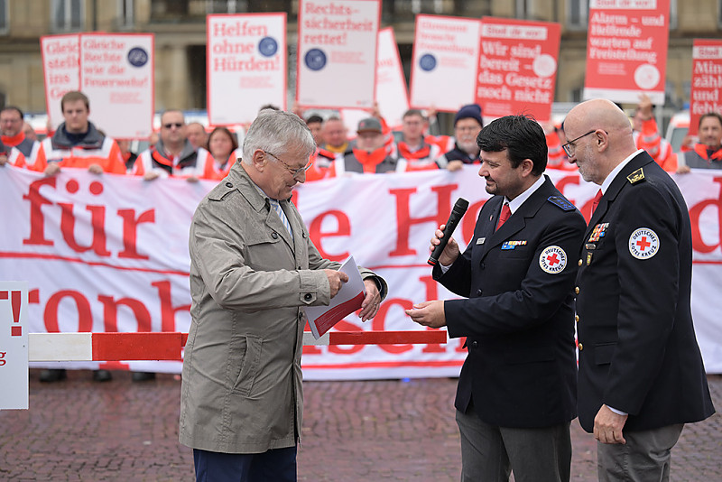 Wir waren bei dem landesweiten Aktionstag dabei. Gemeinsam mit vielen anderen Teilnehmenden wollten wir ein starkes Zeichen setzen. Denn ohne klare Regelungen sinkt die Attraktivität des Ehrenamtes – und damit letztlich die Sicherheit der Bürgerinnen und Bürger.