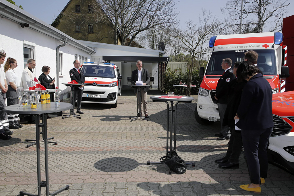 Thorsten Antritter, der als 1. Vorsitzender die Fahrzeuge stellvertretend für den DRK-Ortsverein in Empfang nahm, dankte der Stadt Walldorf und der Dietmar Hopp Stiftung „für die großherzige Unterstützung“ sowie Andreas Schuppe und Thorsten Bruckmeier von der Bereitschaftsleitung für Organisation und Planung bei der Anschaffung der beiden Fahrzeuge. Gerade weil im Rahmen der Corona-Pandemie viele Sanitätsdienste ausfielen, mit denen – neben Spenden und Mitgliedsbeiträgen – Einnahmen erwirtschaftet werden, ist der Ortverein über diesen finanziellen Beitrag sehr dankbar, betonte Antritter.