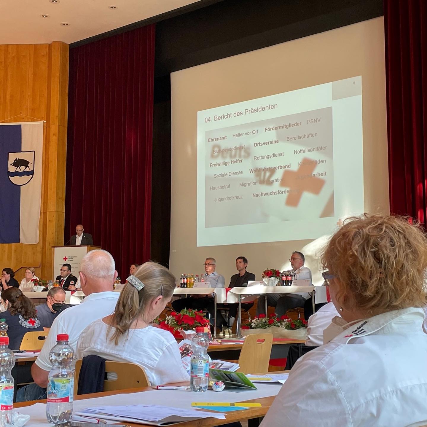 Der Präsident des DRK Kreisverbandes Rhein-Neckar/Heidelberg, Jürgen Wiesbeck, hatte dieses Mal zur alle zwei Jahre stattfindenden Kreisversammlung in die Stadthalle Eberbach eingeladen, wo er die Teilnehmer am 17. Mai 2022 herzlich begrüßte. Das Grußwort zu der Veranstaltung überbrachte Bürgermeister Peter Reichert, der auch Vorsitzender des DRK Ortsvereins Eberbach ist.