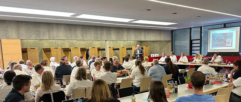 Yvonne Wiedl berichtete über die vergangene vierjährige Amtszeit und deren Herausforderungen: Angefangen mit der Pandemie und den damit einhergehenden Aktivitäten, dem Einsatz bei der Fluthilfe im Ahrtal, der Umzug der Chirurgie, Sanitätsdienste in der PreZero-Arena (Geisterspiele), Hilfe im Ukraine-Konflikt (Koordinierungsstelle, Einsatz vor Ort), Start der Sanitätsdienste im SNP-Dome, Einsatz bei den Bombenentschärfungen in der Bahnstadt, und vieles mehr.
