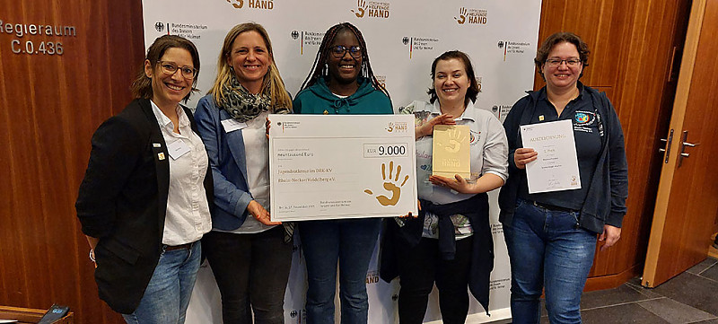 Bei der Verleihung des Förderpreises „Helfende Hand“ 2023 im Bundesinnenministerium in Berlin gewann das Projekt „Schulanfängerwochen“ des DRK-Kreisverbandes Rhein-Neckar/Heidelberg e.V. den Ersten Preis in der Kategorie „Nachwuchsarbeit“.