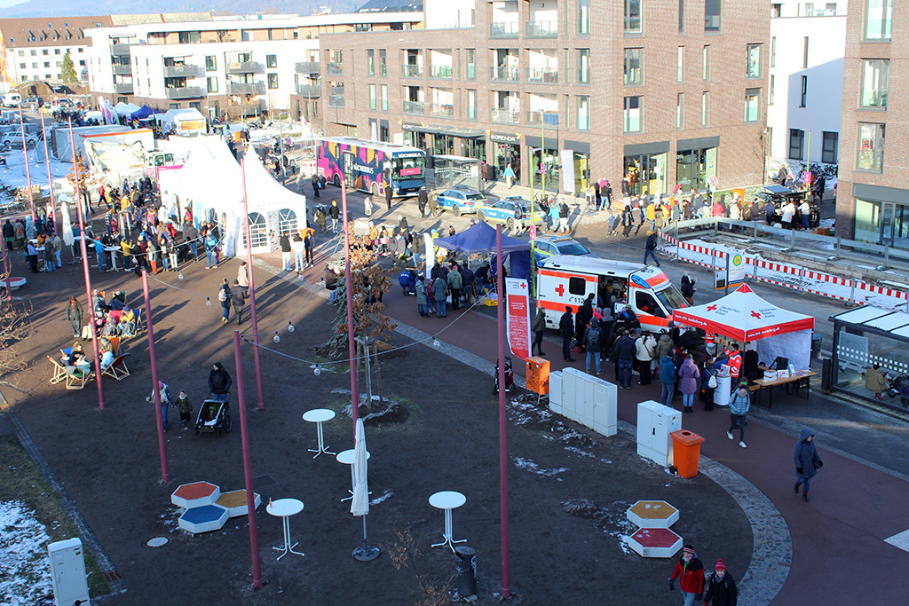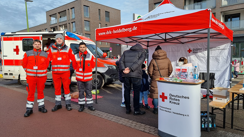 „Eiskalt, aber sehr schön“, sagte ein Besucher auf dem Marlene-Dietrich-Platz in der Heidelberger Südstadt. Und so lässt sich das Heidelberger Neujahrsfest 2024 kurz und treffend auch beschreiben. Das alle zwei Jahre stattfindende, ehemalige „Bürgerfest“ hatte auch unter neuem Namen diesmal wieder viel zu bieten. Zahlreiche Vereine, Sportclubs, Ämter, Parteien und Organisationen stellten sich mit ihren Ständen vor. Natürlich auch das DRK Rhein-Neckar/Heidelberg, deren Bereitschaft Heidelberg-Süd auch den Sanitätsdienst stellte und für die Sicherheit der Besucherinnen und Besucher sorgte.