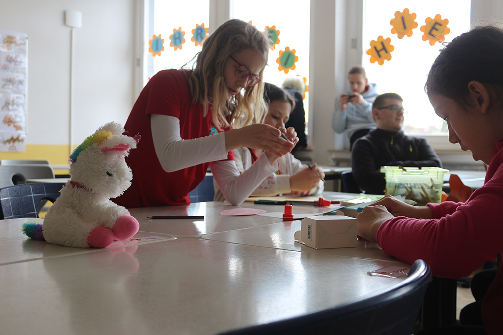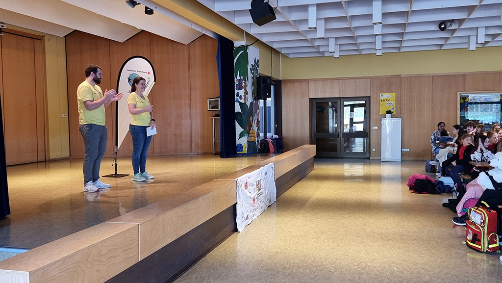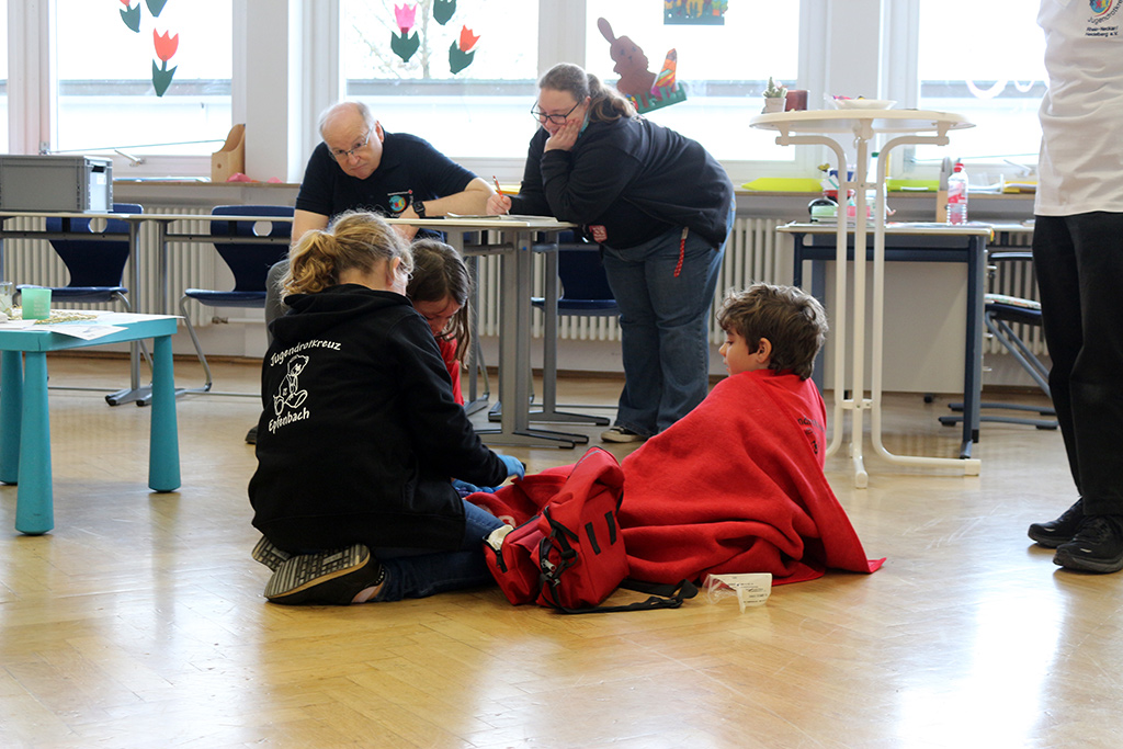 Rund 25 Kinder und Jugendliche in den Altersstufen 1-3 kamen am Samstag in der Angelbachtaler Sonnenbergschule zusammen, um ihr Können und Wissen in den Kategorien Erste Hilfe/Notfalldarstellung, Rotkreuzwissen, Sport, Soziales oder Kreativaufgaben zu präsentieren. Angetreten waren Gruppen der Stufe 1 (Jahrgänge 2012-2014), Stufe 2 (Jahrgänge 2008-2011) und Stufe 3 (Jahrgänge 1997-2007). Der Rotkreuznachwuchs war voll motiviert und ging konzentriert an die Aufgaben. Dennoch kamen auch der Spaß und das Miteinander nicht zu kurz – spielerische Rivalität zeigte sich zum Beispiel, wenn die JRK- oder SSD-Gruppen versuchten, sich gegenseitig das Maskottchen zu stehlen, und es gegen ein Süßigkeiten-Pfand wieder freigaben.