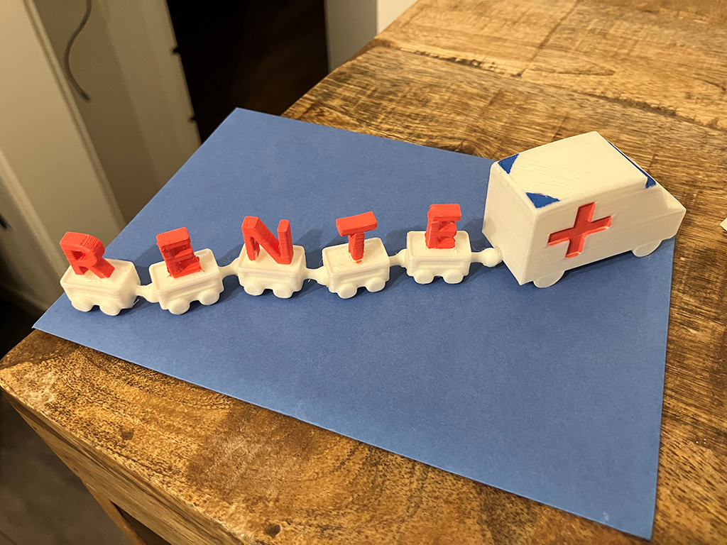 Nach dieser Schicht wurde er im Kollegenkreis feierlich verabschiedet: Wachenleiter Ramon Hoeft überreichte ihm einen RTW, an den der „Zug zur Rente“ angehängt war – in den Hans Brandner nach dem letzten Dienst sinnbildlich einsteigen durfte.
