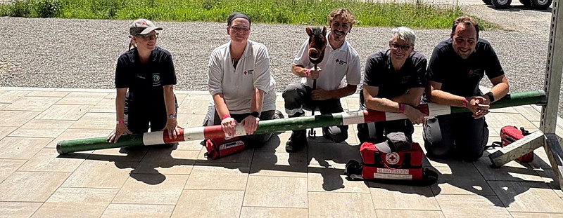 Dabei ging es unter anderem um solche Fragstellungen: Wie gehe ich mit einem Herzinfarkt um, wie reanimiere ich einen Patienten oder wie verhalte ich mich bei einem Unfall oder einem allergischen Schock? Wertungsrichter wachten über die Leistungen. Bei hochsommerlichen Temperaturen mussten die Teams in mehr als 5 Stunden einen anspruchsvollen Wettbewerb durchlaufen, der ihnen ihr ganzes Können abverlangte.